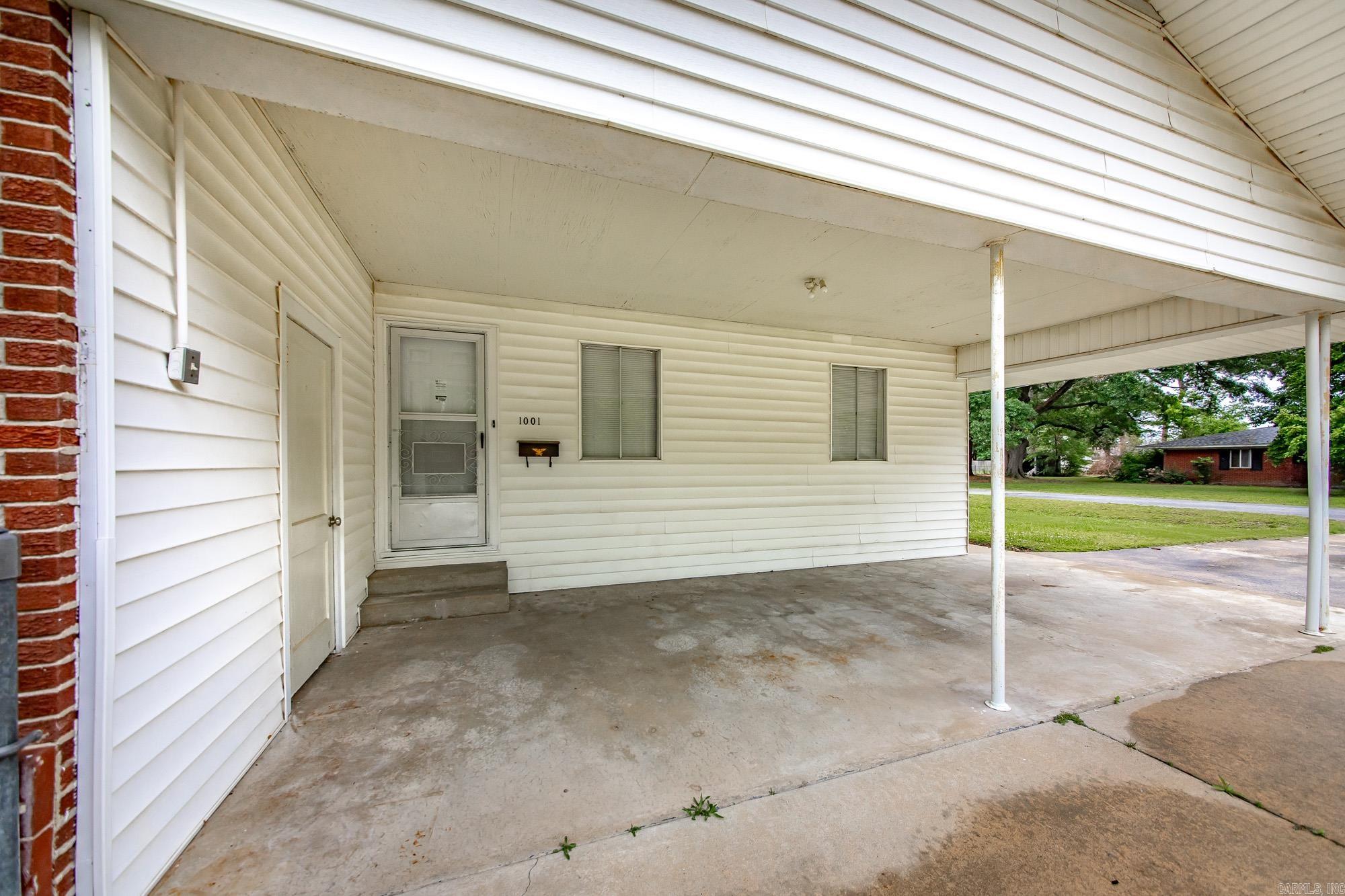 The home is perfect as a place to downsize or start off. It is neat and clean. Living room, kitchen, 3 beds, 2 baths with laundry. A fenced yard and carport are attached. New floor treatments and bathroom showers and fixtures just completed on 4/1/2026. A combination package with the house next door 1003 is priced at $199,999.
