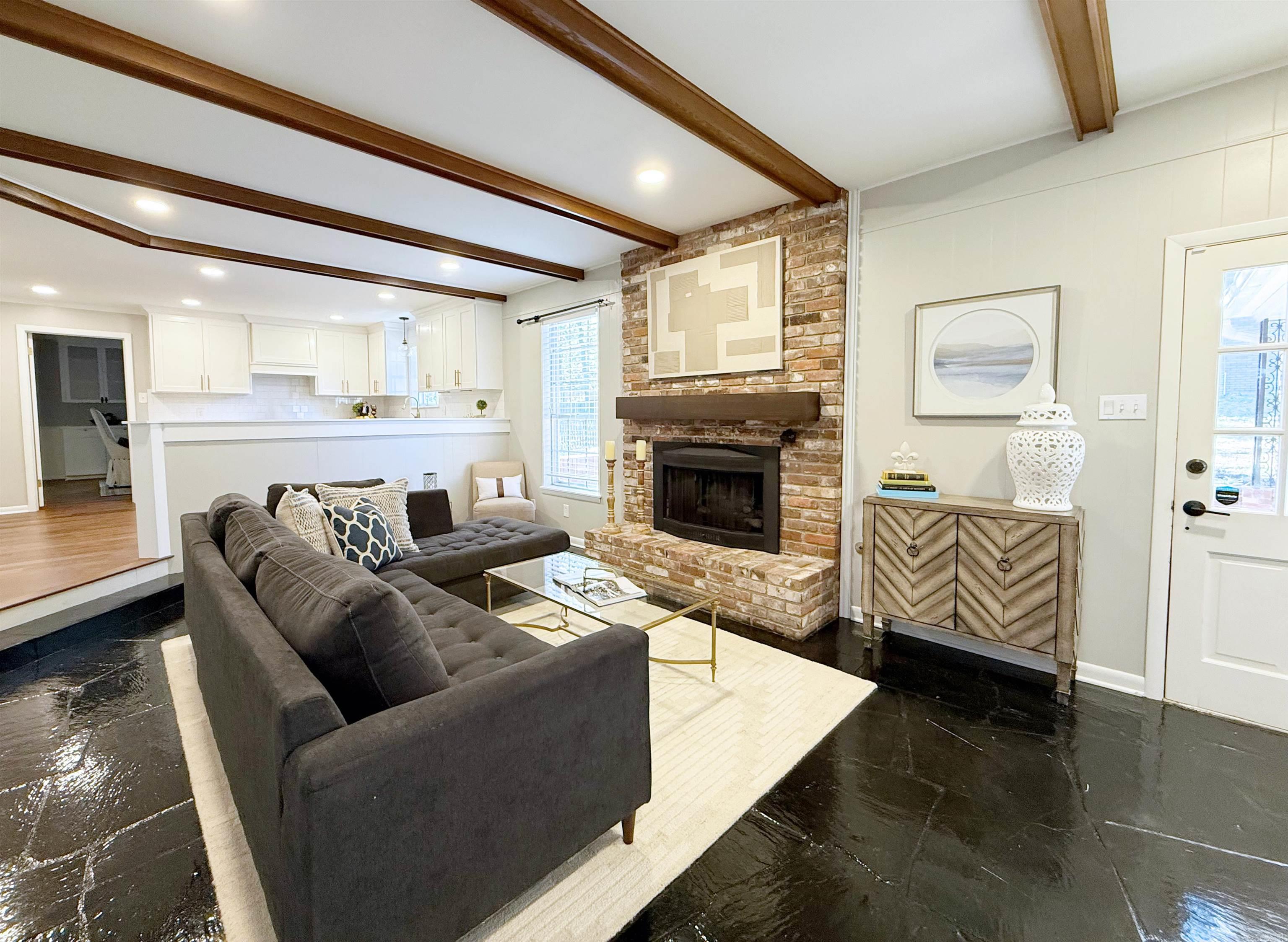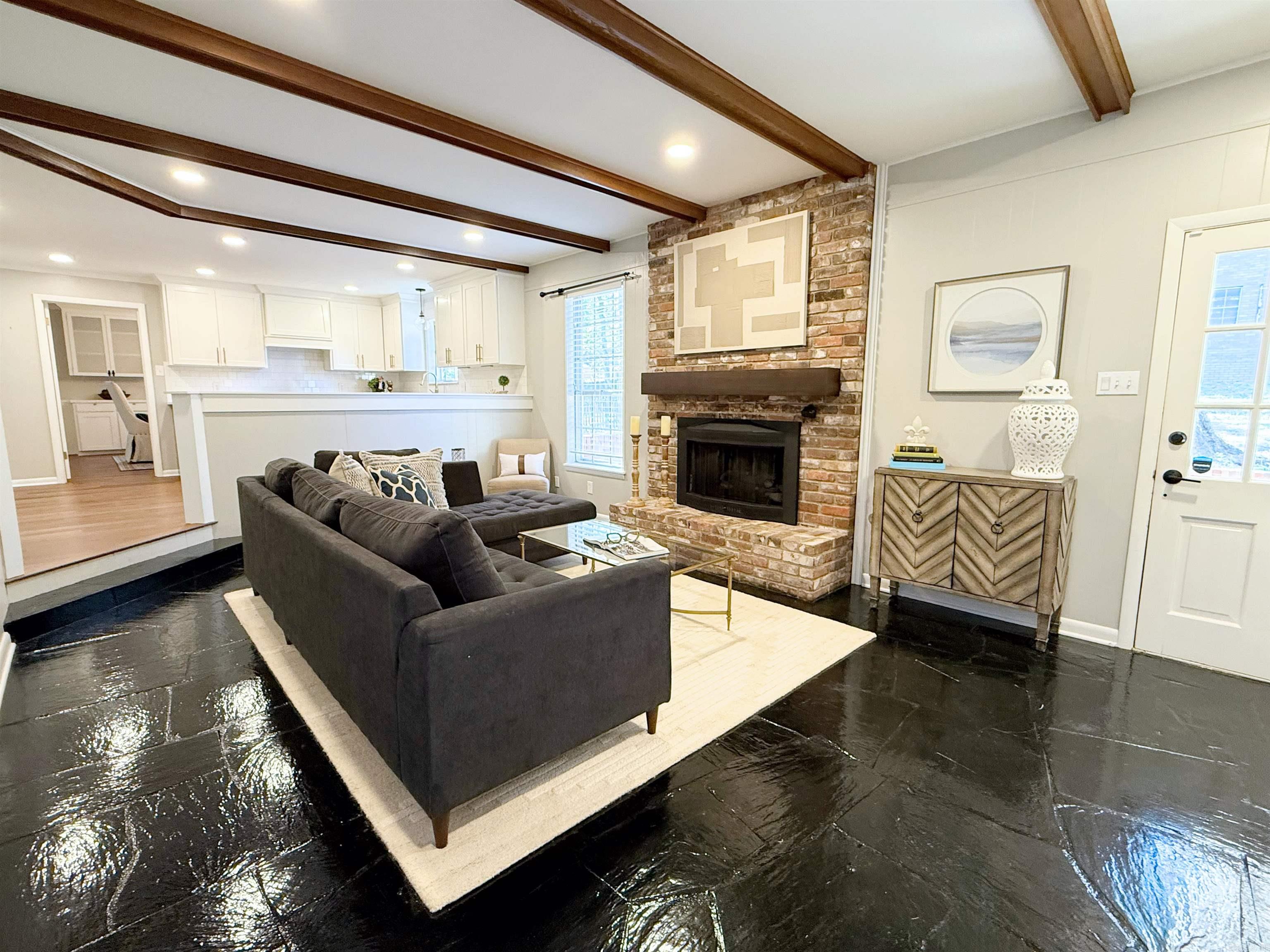 Welcome to this stunning Leawood home, set on a desirable corner lot and thoughtfully updated since 2020. Offering three spacious living areas, this home is perfect for both everyday living and entertaining. The updated kitchen features a gas range, quartz countertops, stainless steel appliances, and opens seamlessly to the family room with a cozy gas fireplace, exposed beams and newly painted slate flooring. A formal living room and dining room provide additional space for gatherings. The primary suite is conveniently located on the main level and boasts an updated bath with a relaxing soaker tub and elegant marble countertops. Upstairs you’ll find three additional bedrooms and a full bath. With its blend of modern updates and timeless charm, this Leawood gem is ready to welcome its next owner. SELLER IS OFFERING A $2500 CONCESSION FOR THE BLACK FLOORS.