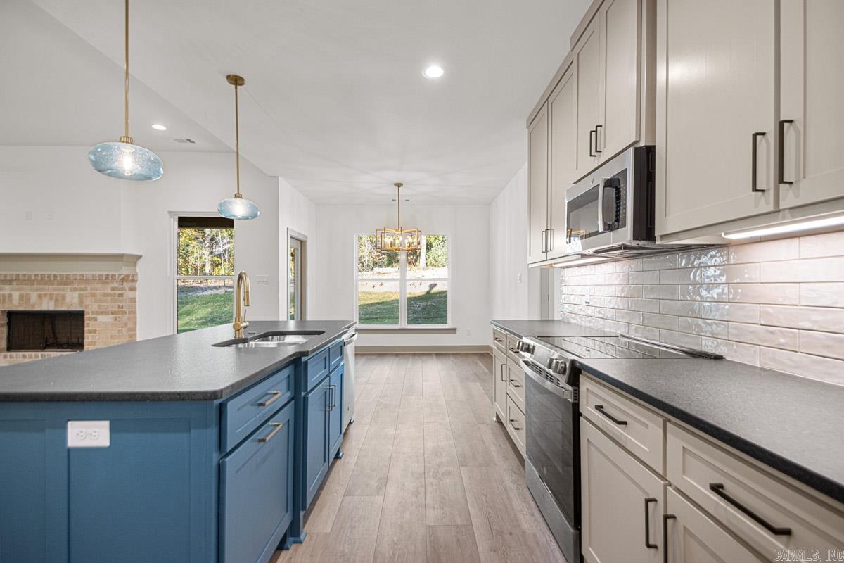 Step inside this beautiful new 4-bedroom, 2-bath home and fall in love with its thoughtful design and modern charm. From the moment you walk through the front door, you’re greeted by a bright, open living space centered around a striking brick fireplace. The kitchen is a true showpiece, featuring leathered granite countertops, custom cabinetry, stainless steel appliances, and a generous pantry for added convenience. The open floor plan makes everyday living and entertaining effortless, while wood laminate flooring flows throughout the main areas and bedrooms, complemented by tile in the baths and laundry. The spacious primary suite offers a private retreat with a walk-in closet, SAFE ROOM, and a beautifully designed ensuite complete with dual sinks, a tiled shower & soaker tub. Quality finishes, timeless style, and a comfortable layout come together perfectly in this new construction home — ready for you to make it your own.