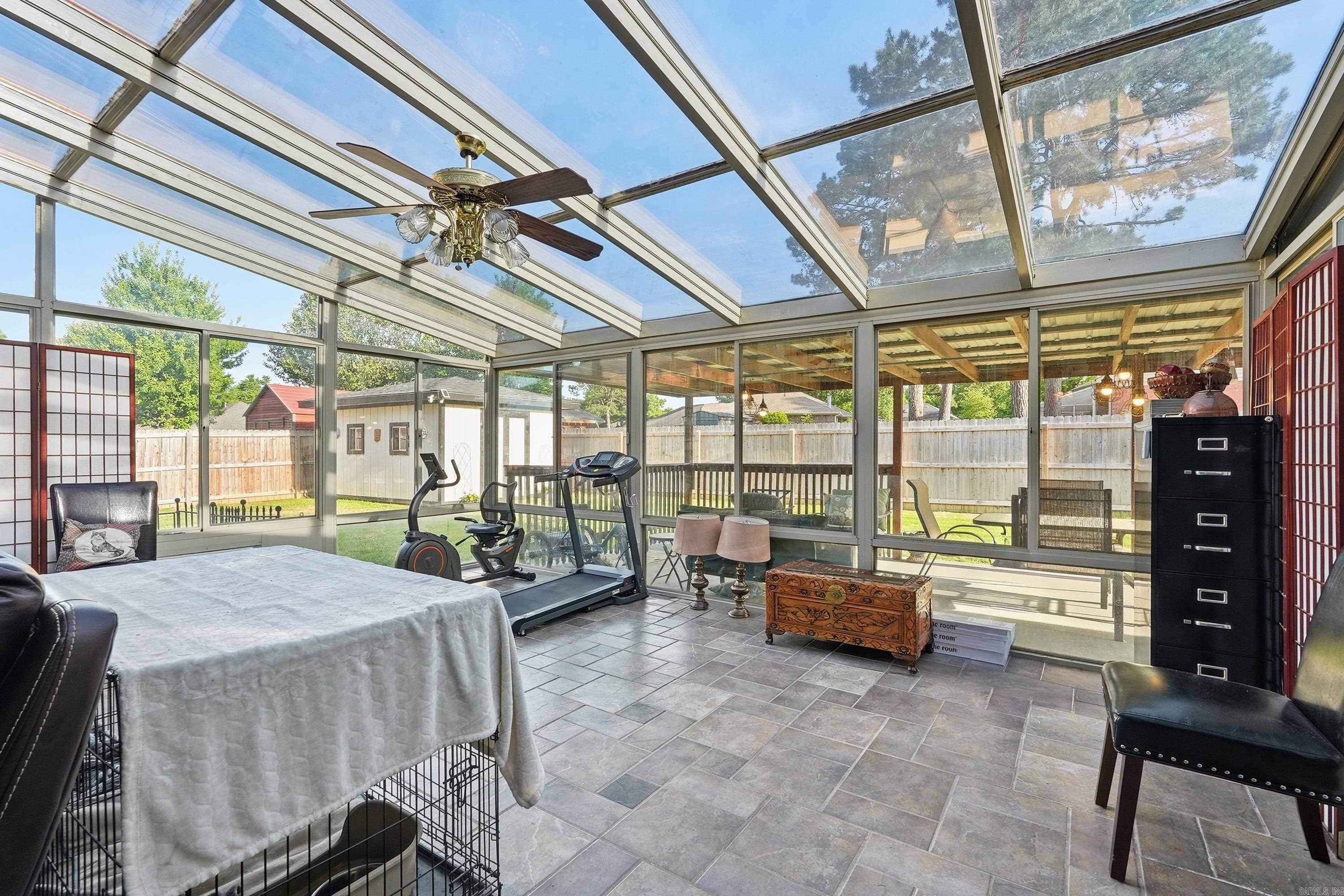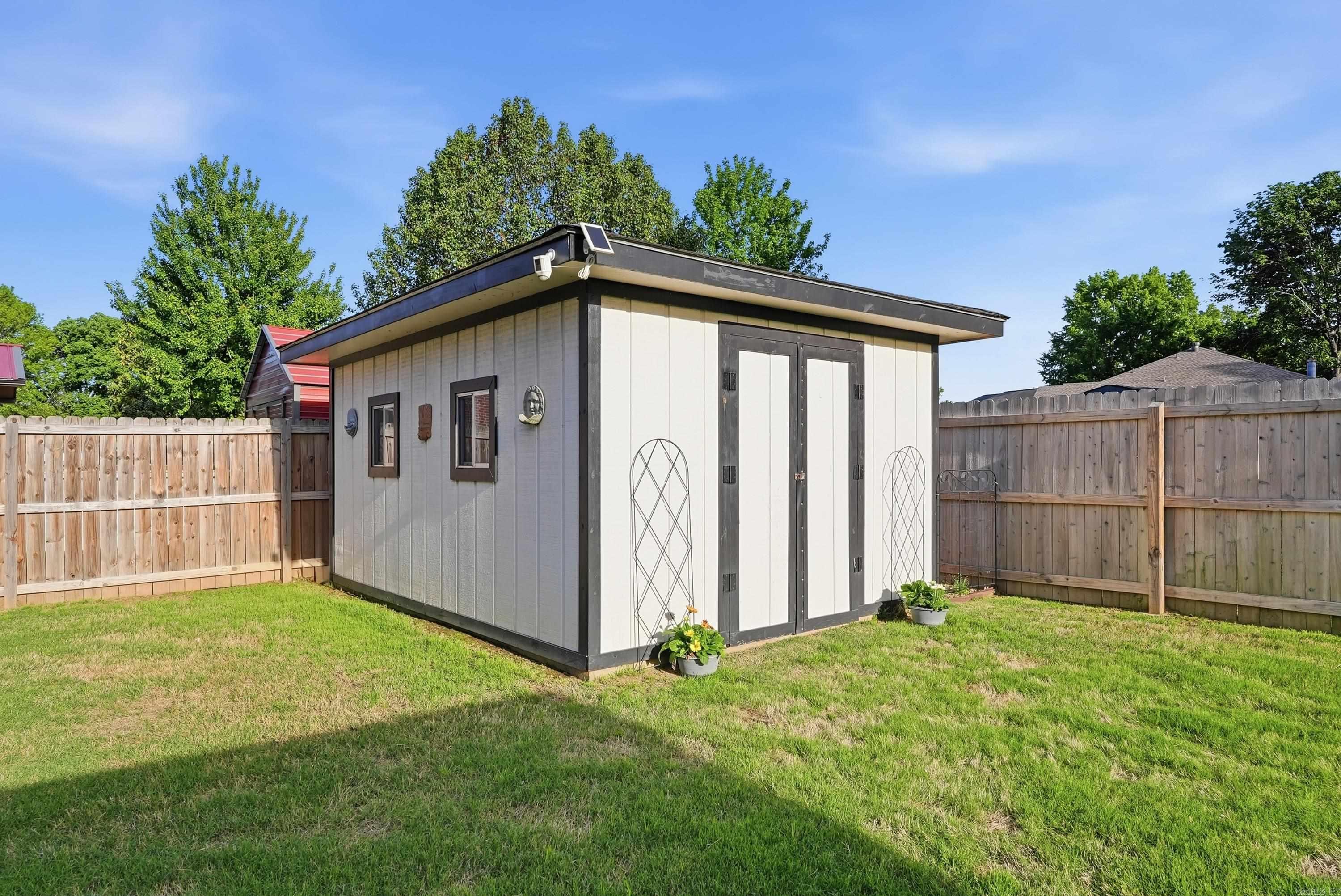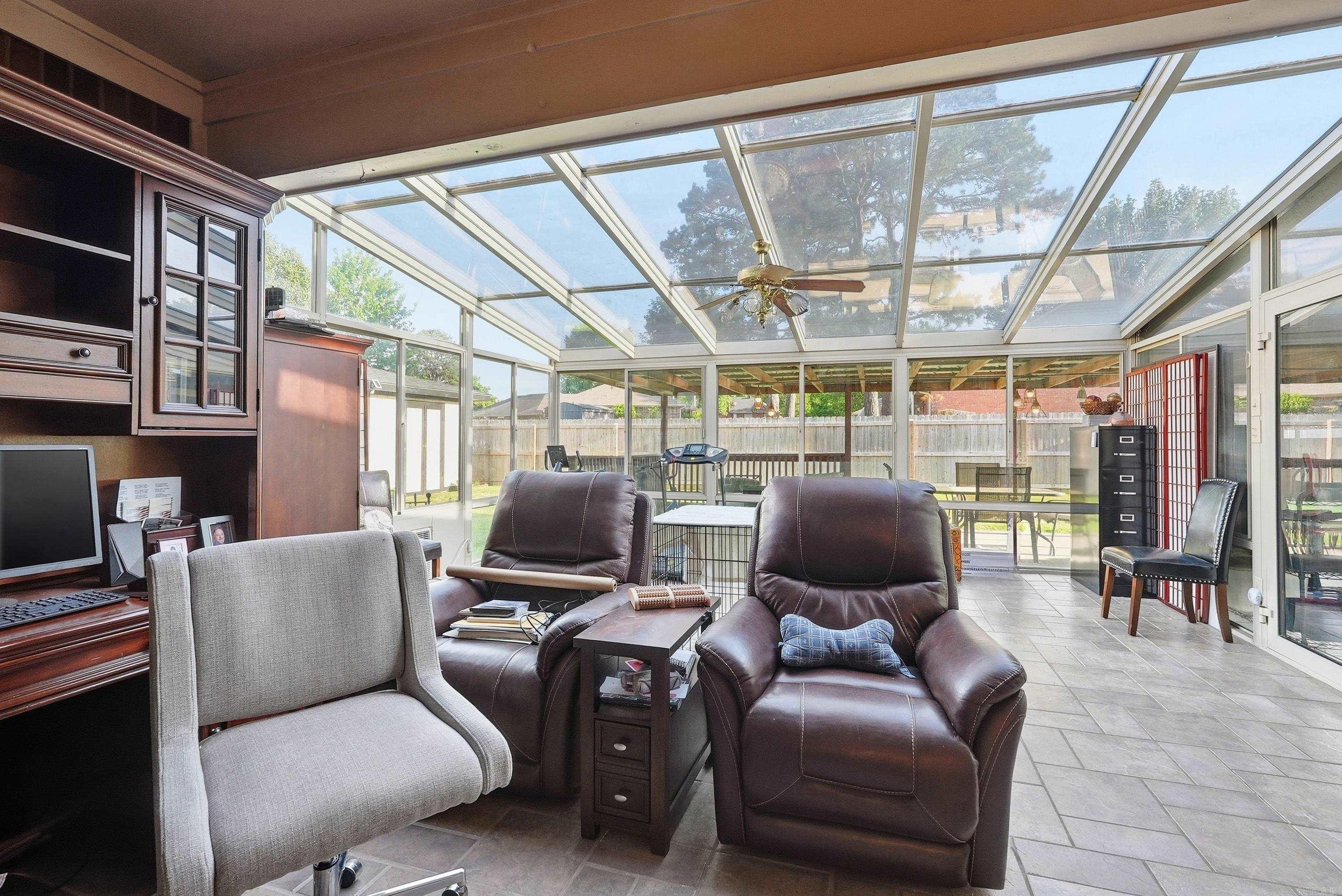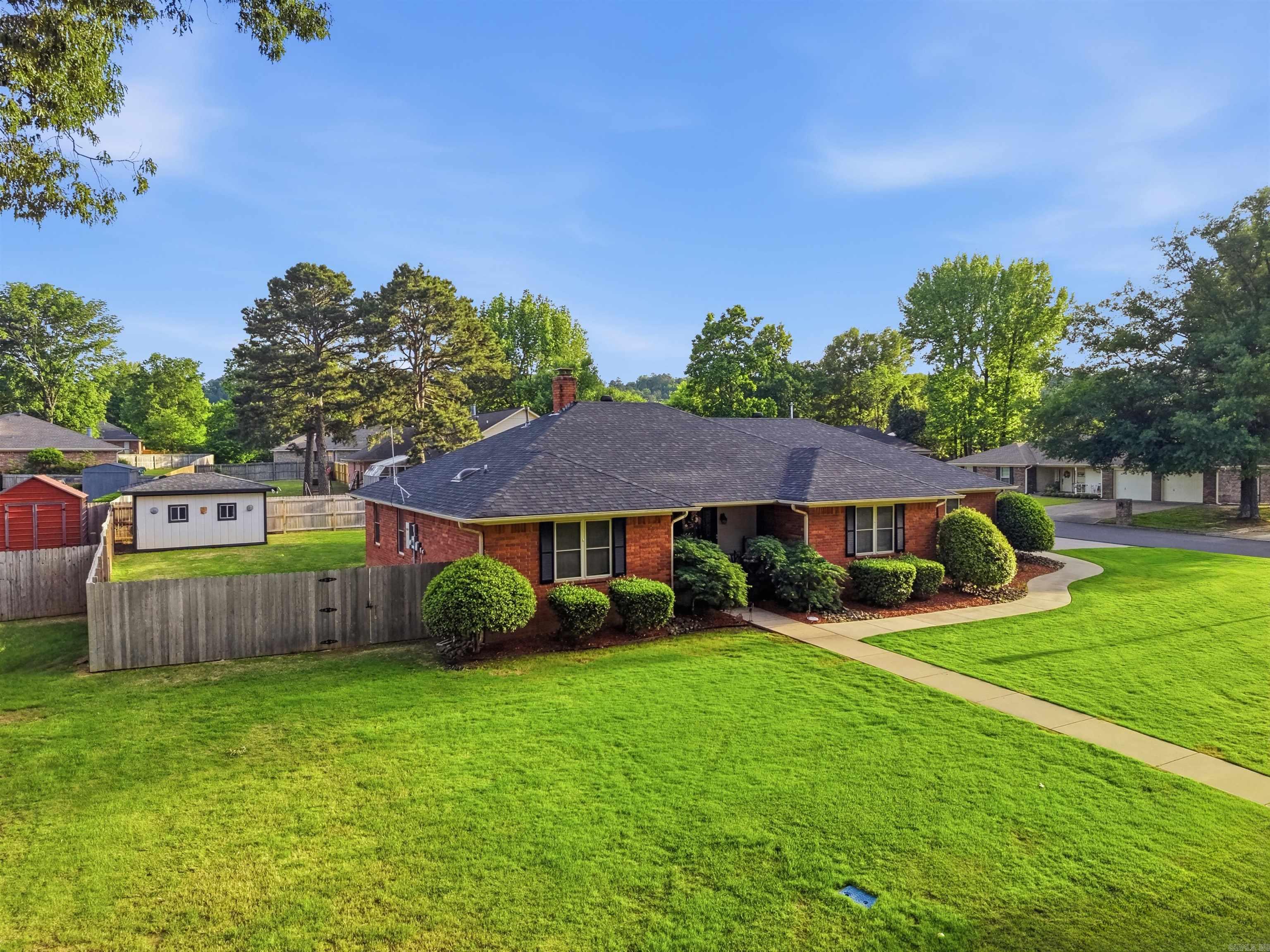 A gem in this popular neighborhood near downtown Russellville. Spacious home with welcoming foyer and living room featuring natural gas fireplace. Spacious master is oversized and includes a luxurious master bath with large sky light, large soaker tub, walk in shower and heated floors. Laundry room includes half bath and plenty of extra room for storage or hanging clothes. Stainless appliances and granite countertops adorn the kitchen which includes a breakfast nook. Formal dining room is adjacent to kitchen for easy serving access. Three additional bedrooms are of varying sizes share an updated bathroom with granite countertop, two sinks, shower/tub combo and skylight. The largest has an extra large closet. Sunroom and patio are excellent for family gatherings. Backyard includes 12 X 16 foot shed which was rebuilt two years ago. What's special: Large corner lot, Emergency generator, Popular neighborhood, Ring security camera, Covered patio, Lawn sprinkler system, Luxury master bath, Extra parking, Large heated and cooled sunroom and Large yard with room for kids/pets.