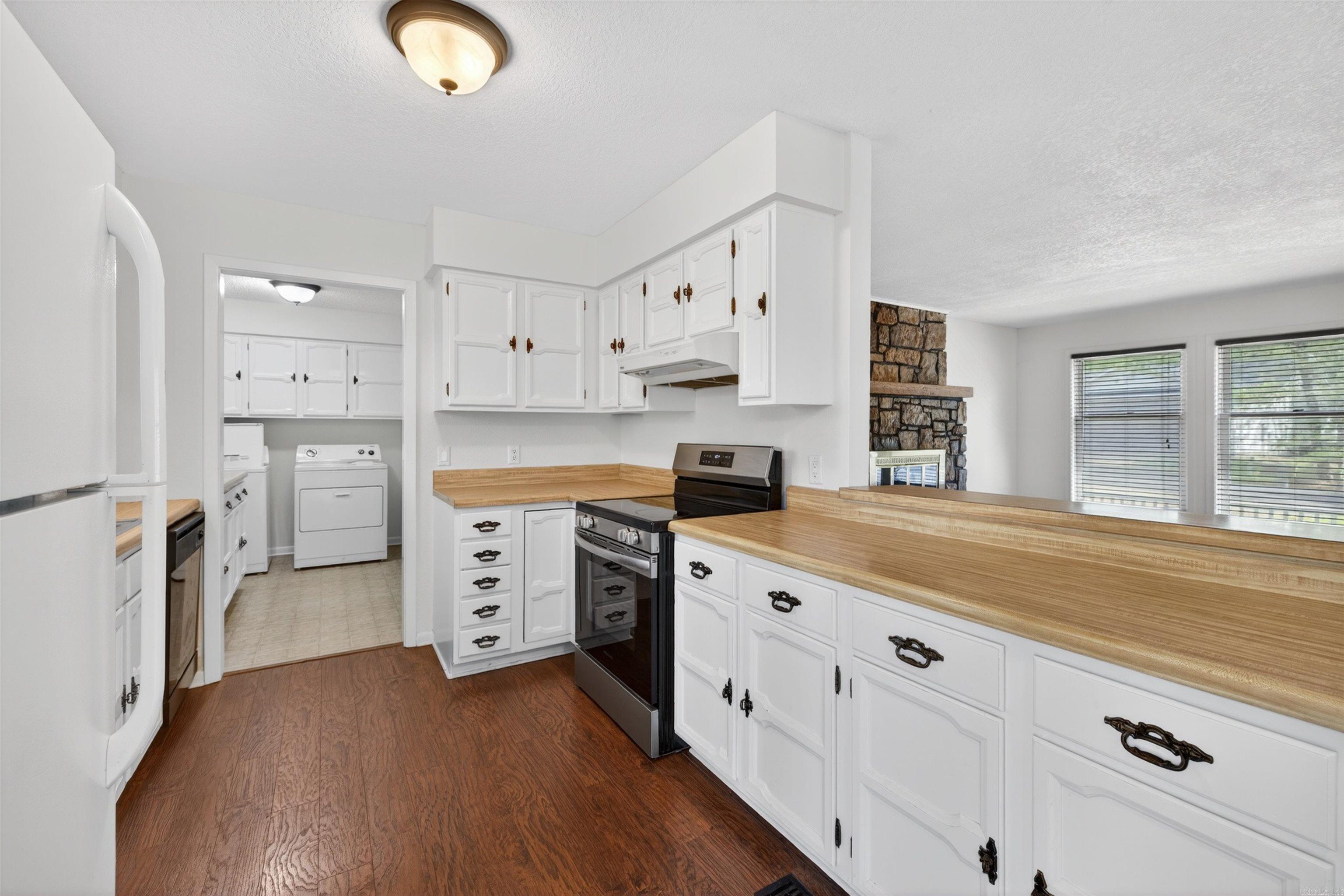 Nice curb appeal in a quiet neighborhood only minutes from the West Gate. Flat driveway and common property to the rear. Two bedroom, one full bath and half bath in primary bedroom. Carpet in bedrooms only. No popcorn ceilings in living room and kitchen. Separate laundry room. Kitchen/dining area open into nice size living room with wood burning fireplace. Rear deck. Two car garage with storage room. New roof in 2023. Refrigerator and washer & dryer convey. Optimum cablevision for tv and internet. No Seller Property Disclosure is available. The home is move in ready, but it is selling in "as is" condition. Buyer still has the right to conduct a home inspection for informational purposes. Call Showing Timefor appointments. 501-244-0333