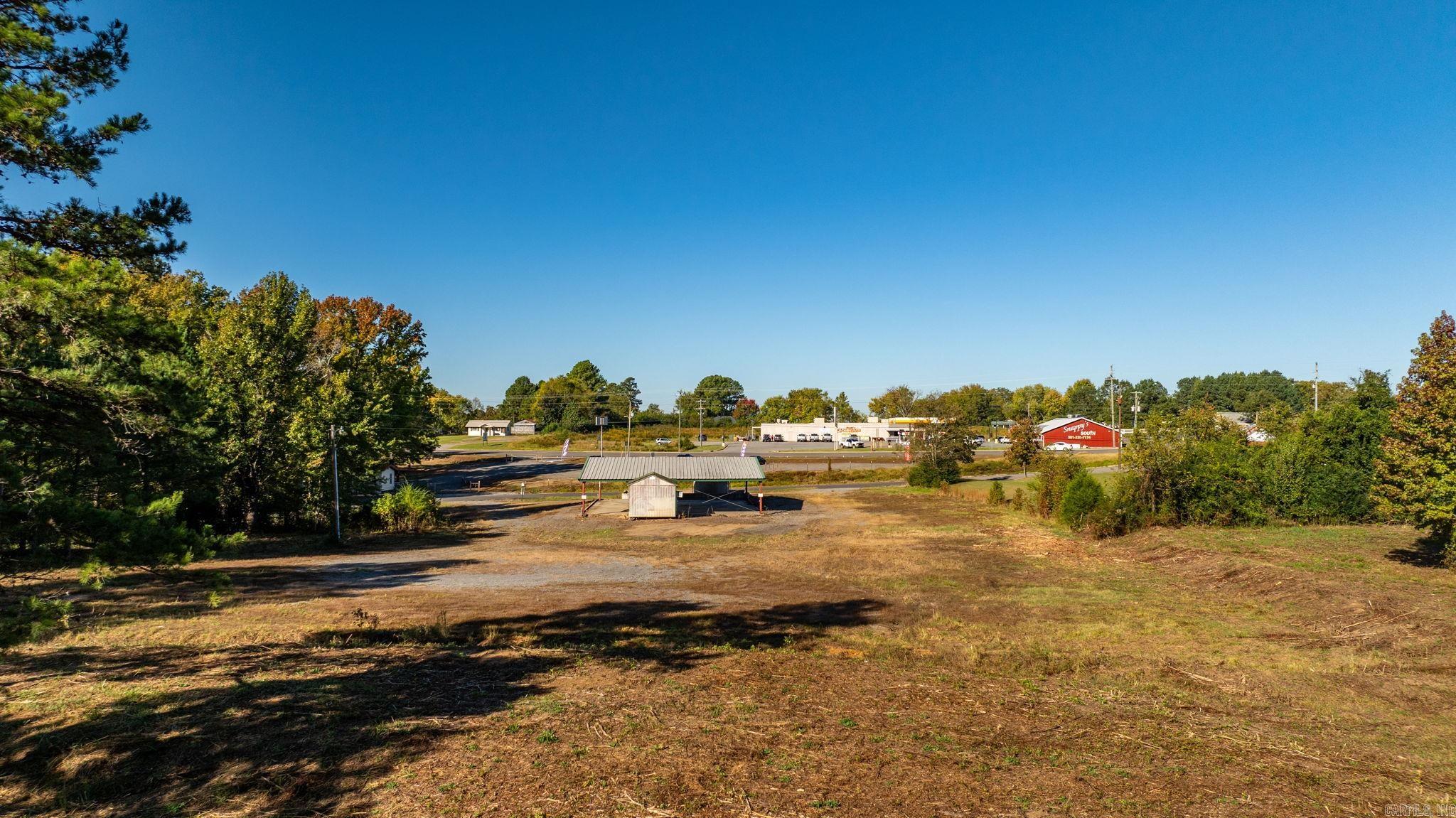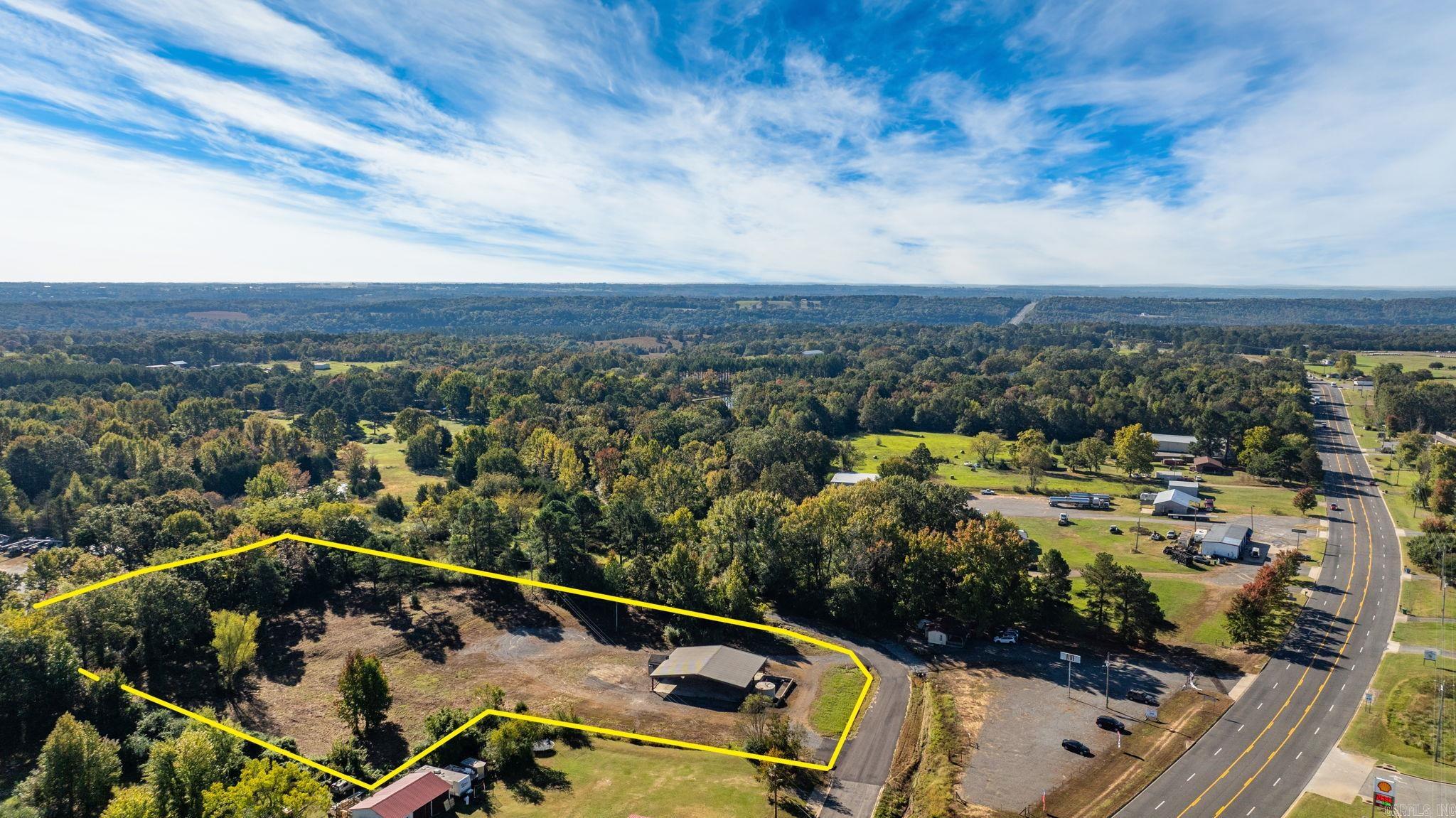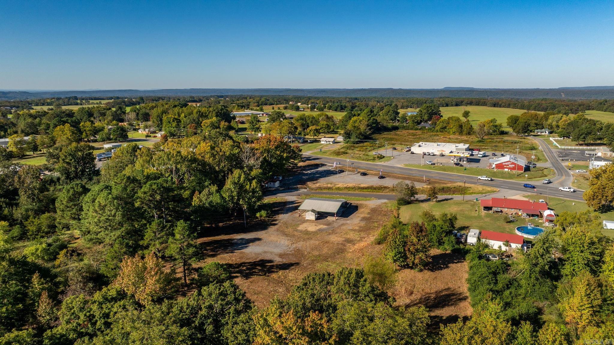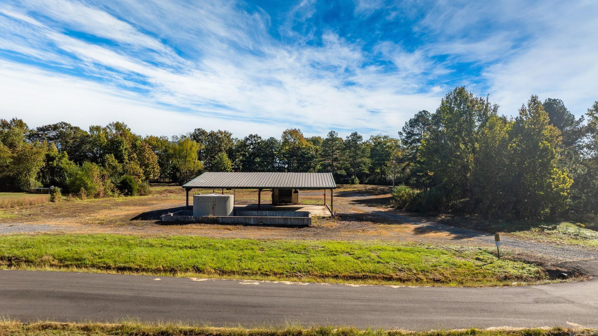 Approximately 4 +/- acres including added features of an open metal-roofed structure with a concrete pad, a small storage/utility shed (10x12) and has electric and water, and a fiberglass water tank (6000 GAL) — perfect for a workshop, storage site, or business use. Property sits on a level lot with paved road frontage and easy access to Highway 65. Included in the sale is a separate wooded one-acre parcel located down the road (see pictures for approx. location) Conveniently located across Highway 65 from Goode’s Cash Saver and Snappy’s in Damascus offering excellent visibility and convenient access.
