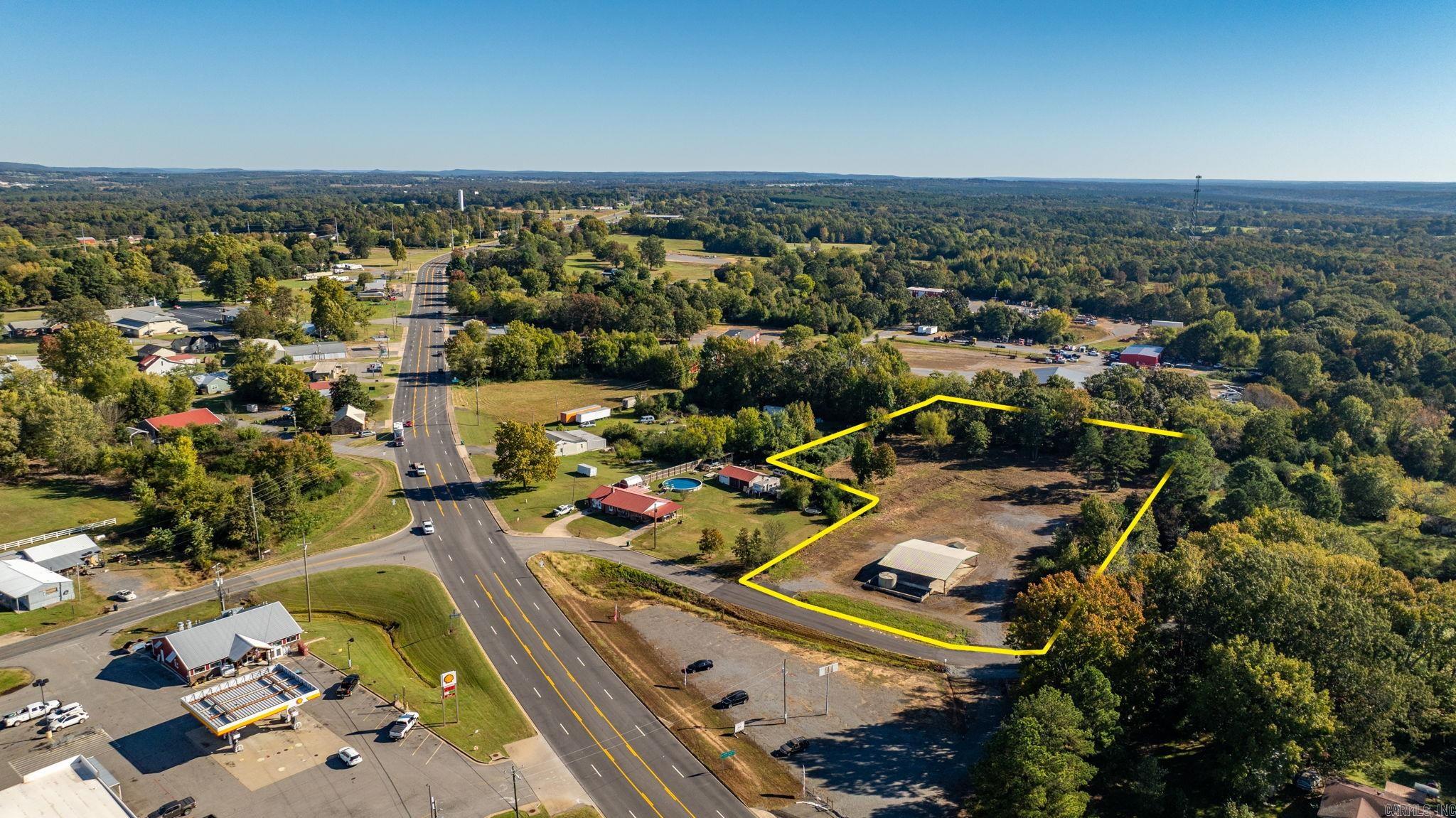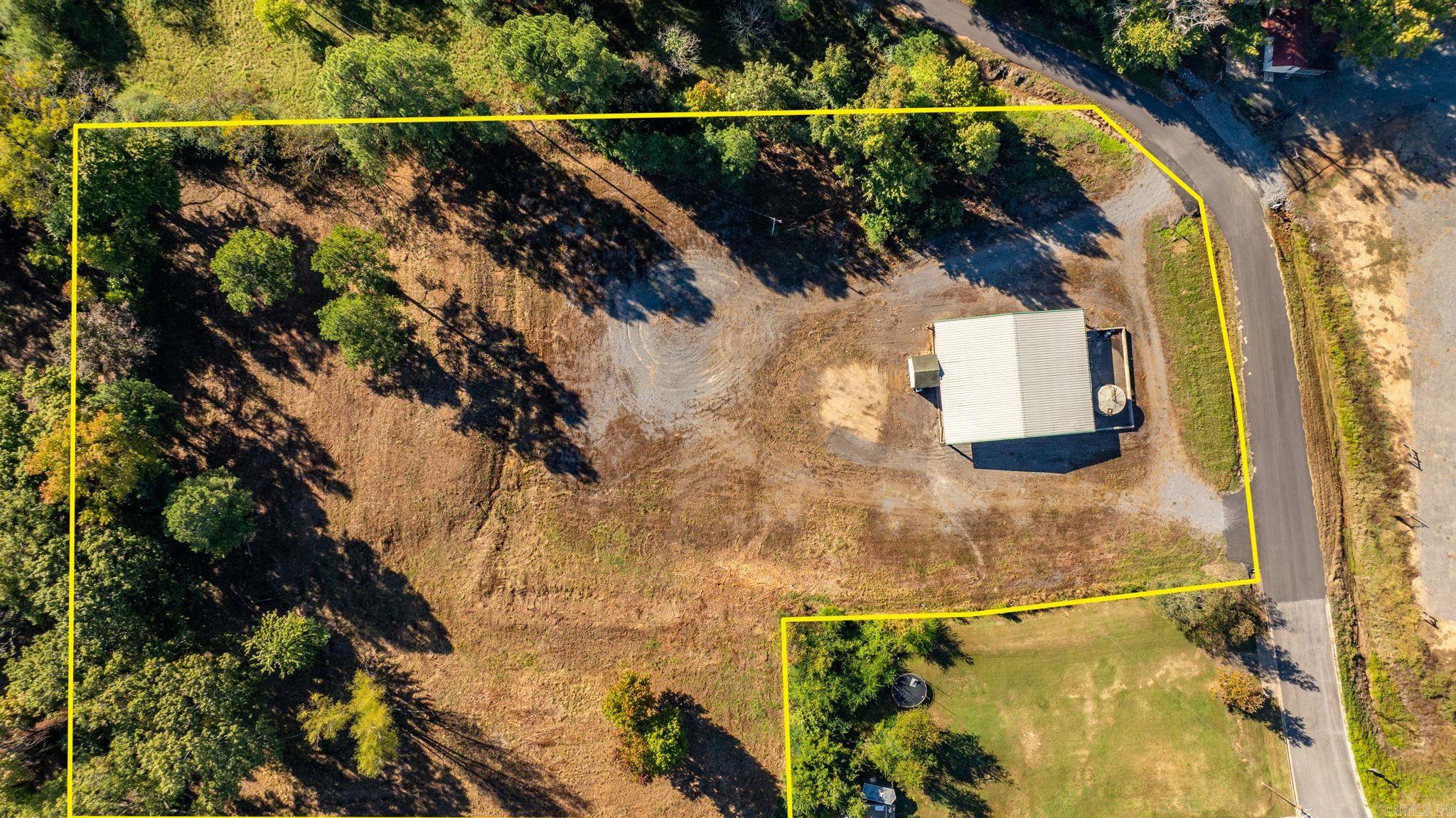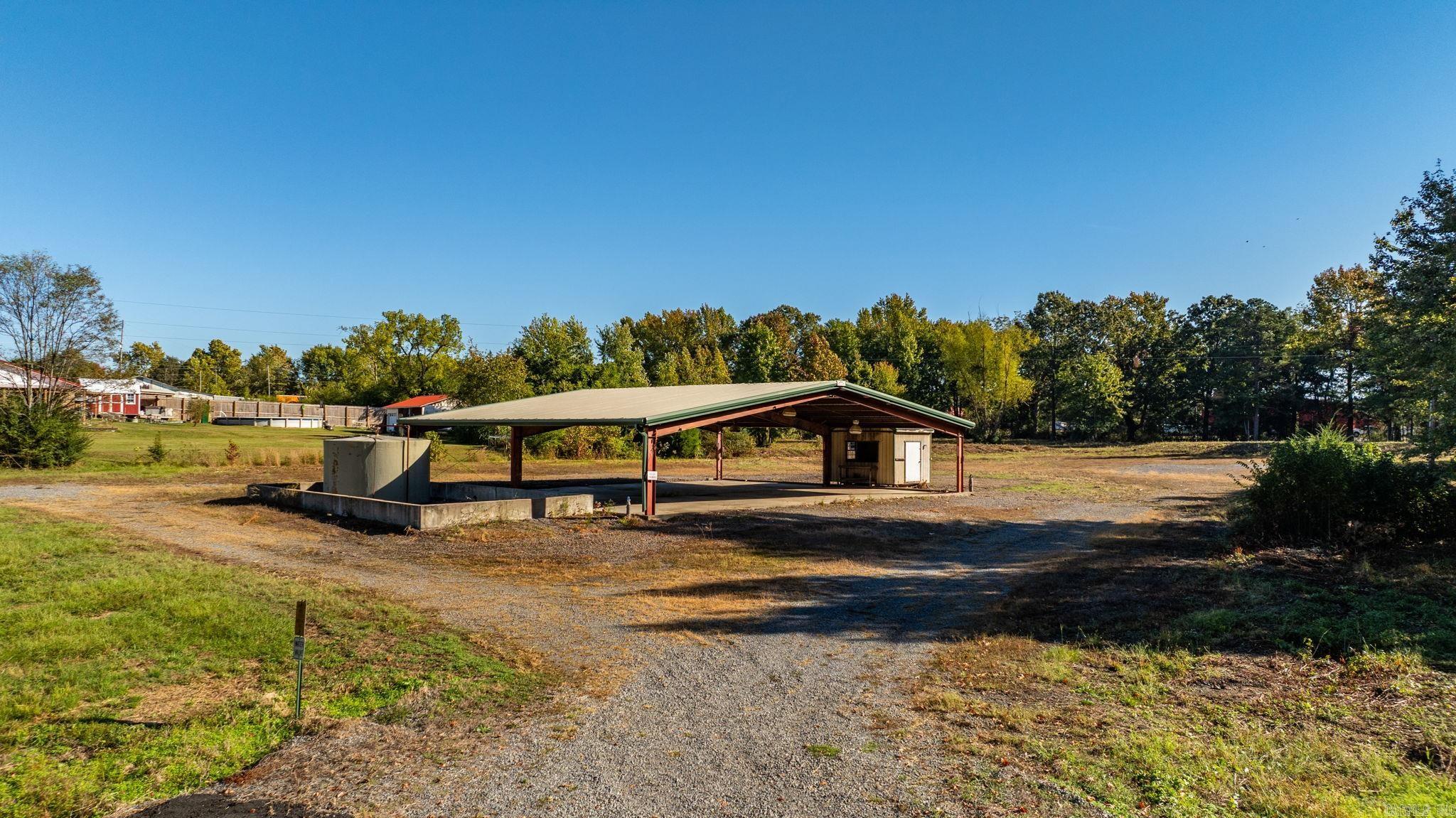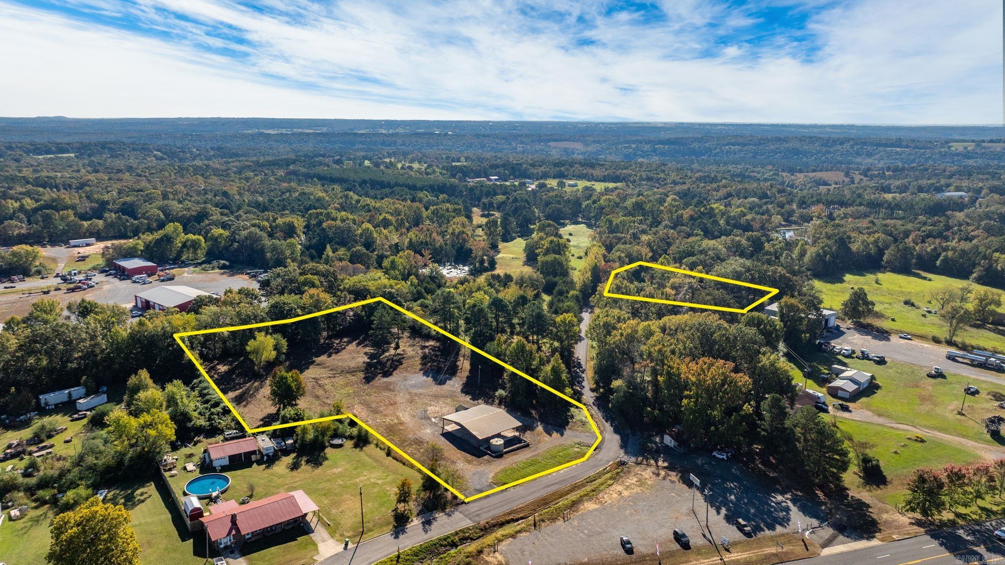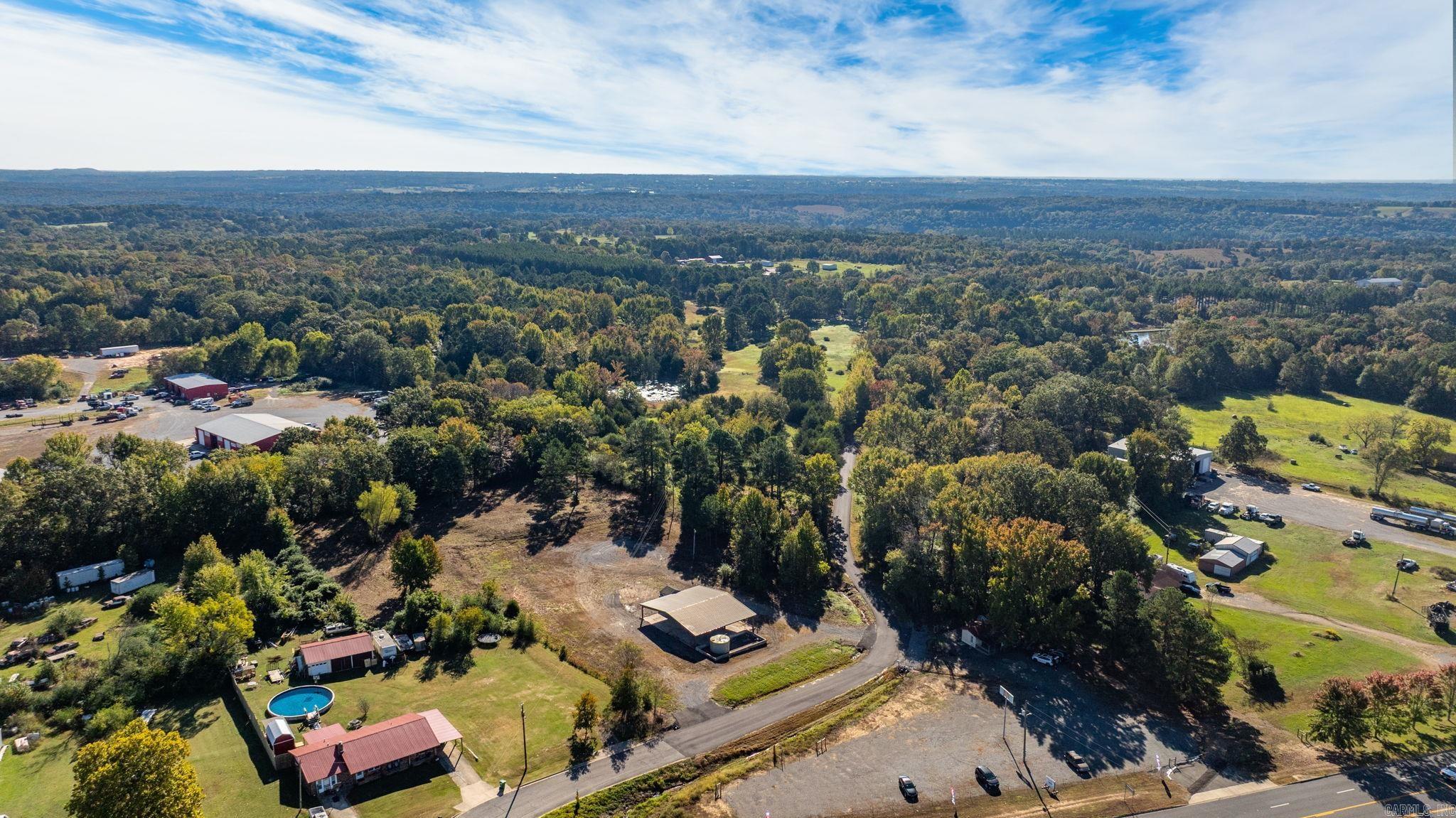 Approximately 4 +/- acres including added features of an open metal-roofed structure with a concrete pad, a small storage/utility shed (10x12) and has electric and water, and a fiberglass water tank (6000 GAL) — perfect for a workshop, storage site, or business use. Property sits on a level lot with paved road frontage and easy access to Highway 65. Included in the sale is a separate wooded one-acre parcel located down the road (see pictures for approx. location) Conveniently located across Highway 65 from Goode’s Cash Saver and Snappy’s in Damascus offering excellent visibility and convenient access.