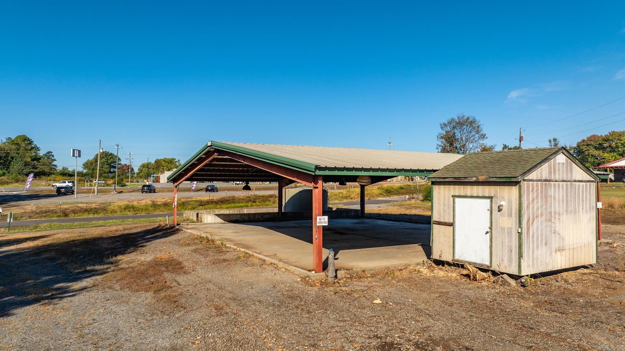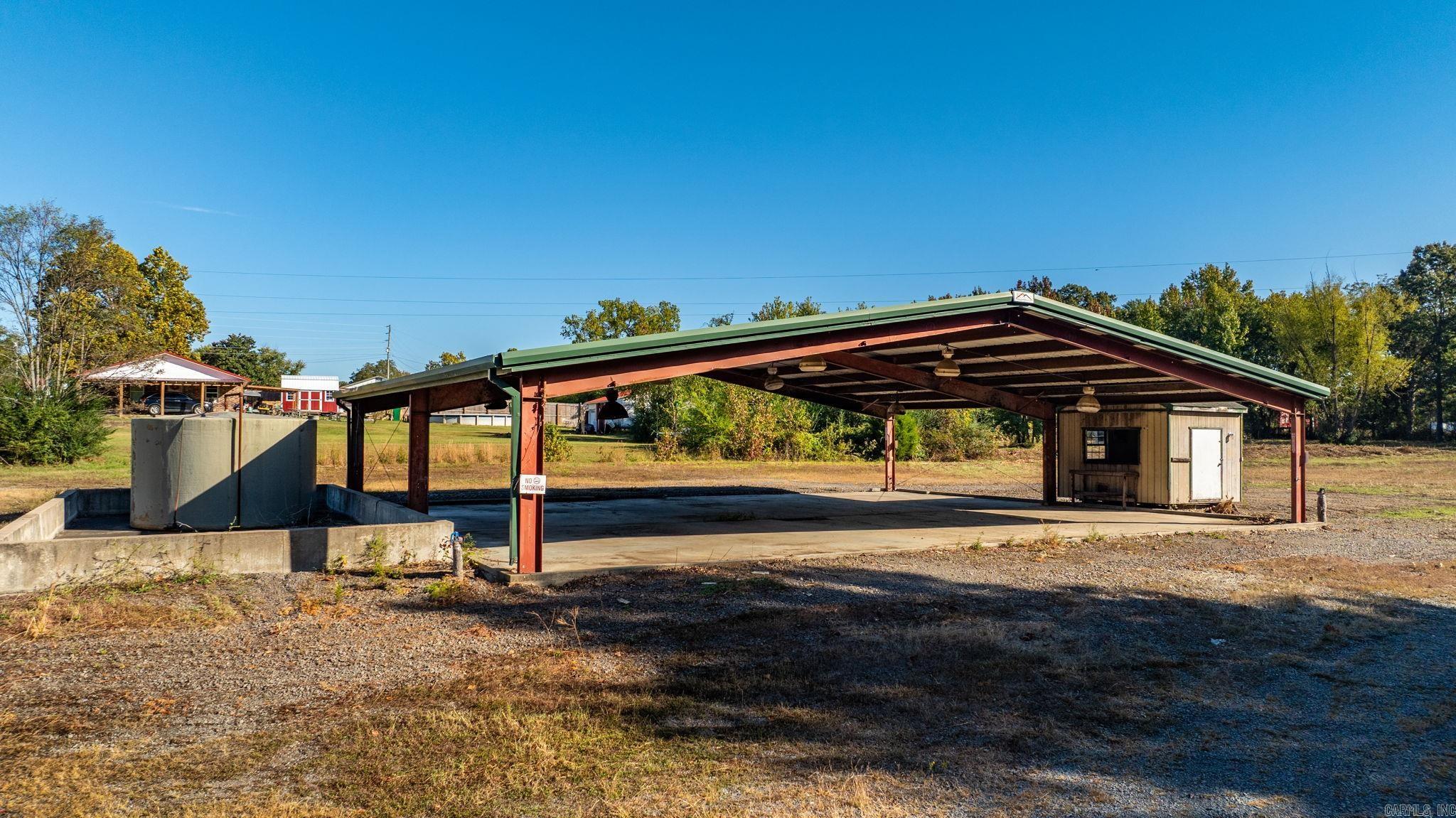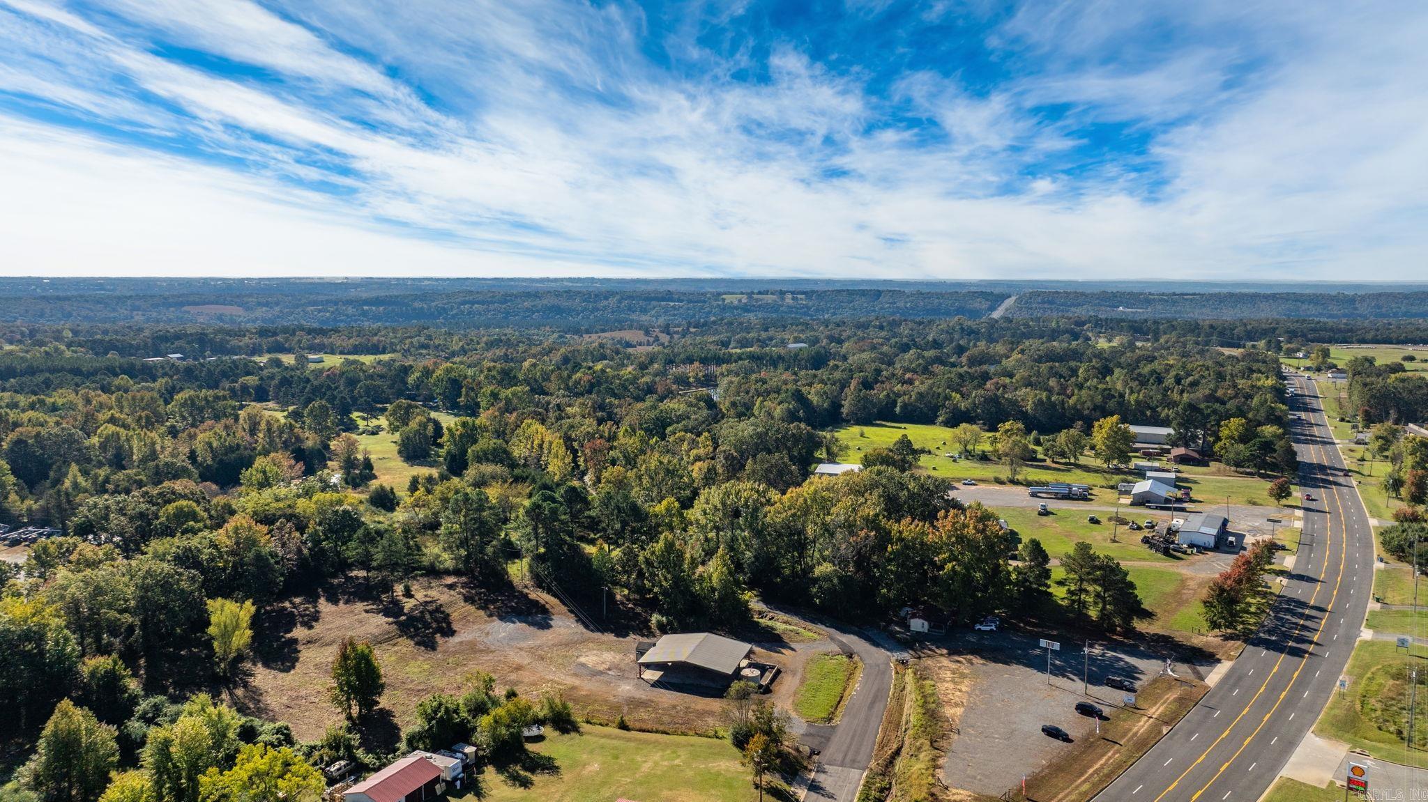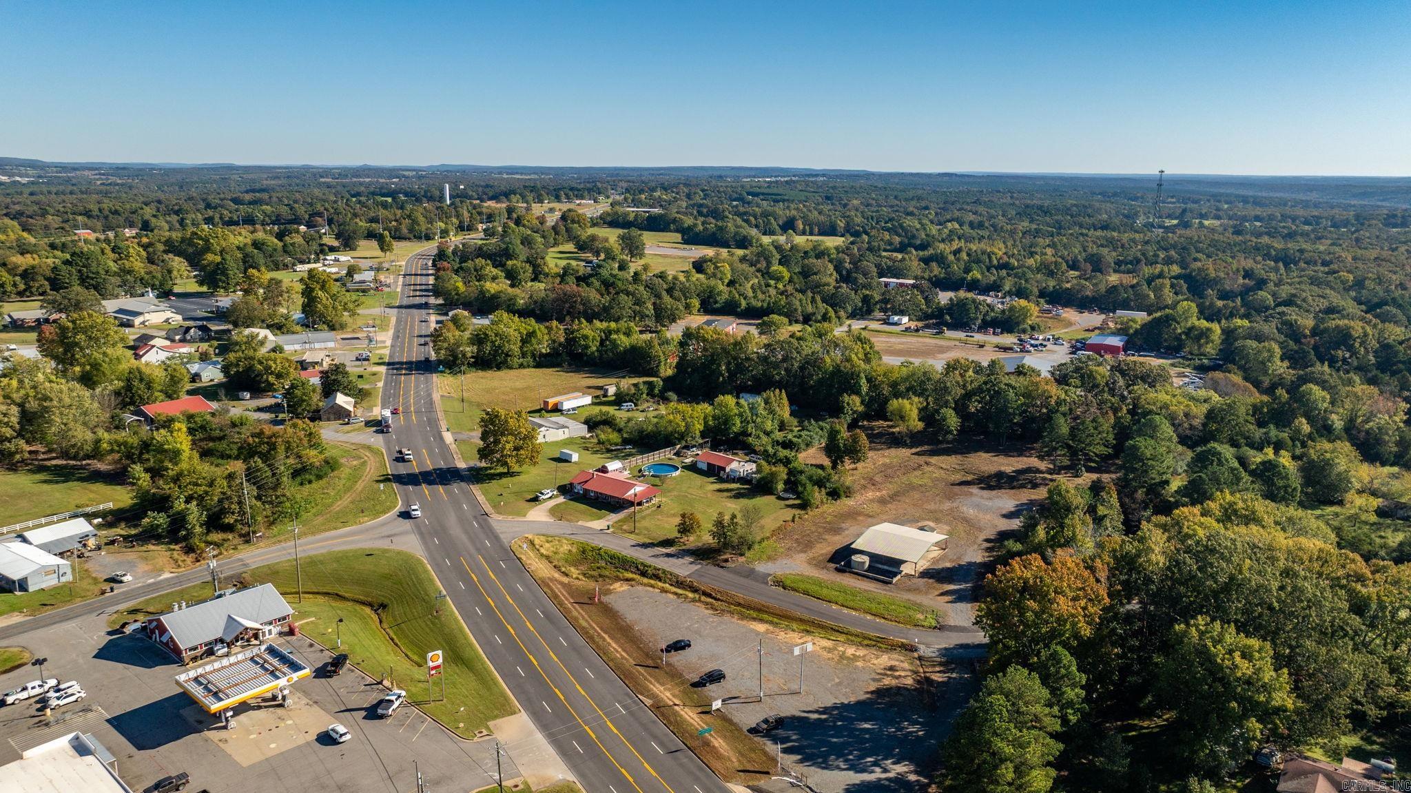 Approximately 4 +/- acres including added features of an open metal-roofed structure with a concrete pad, a small storage/utility shed (10x12) and has electric and water, and a fiberglass water tank (6000 GAL) — perfect for a workshop, storage site, or business use. Property sits on a level lot with paved road frontage and easy access to Highway 65. Included in the sale is a separate wooded one-acre parcel located down the road (see pictures for approx. location) Conveniently located across Highway 65 from Goode’s Cash Saver and Snappy’s in Damascus offering excellent visibility and convenient access.
