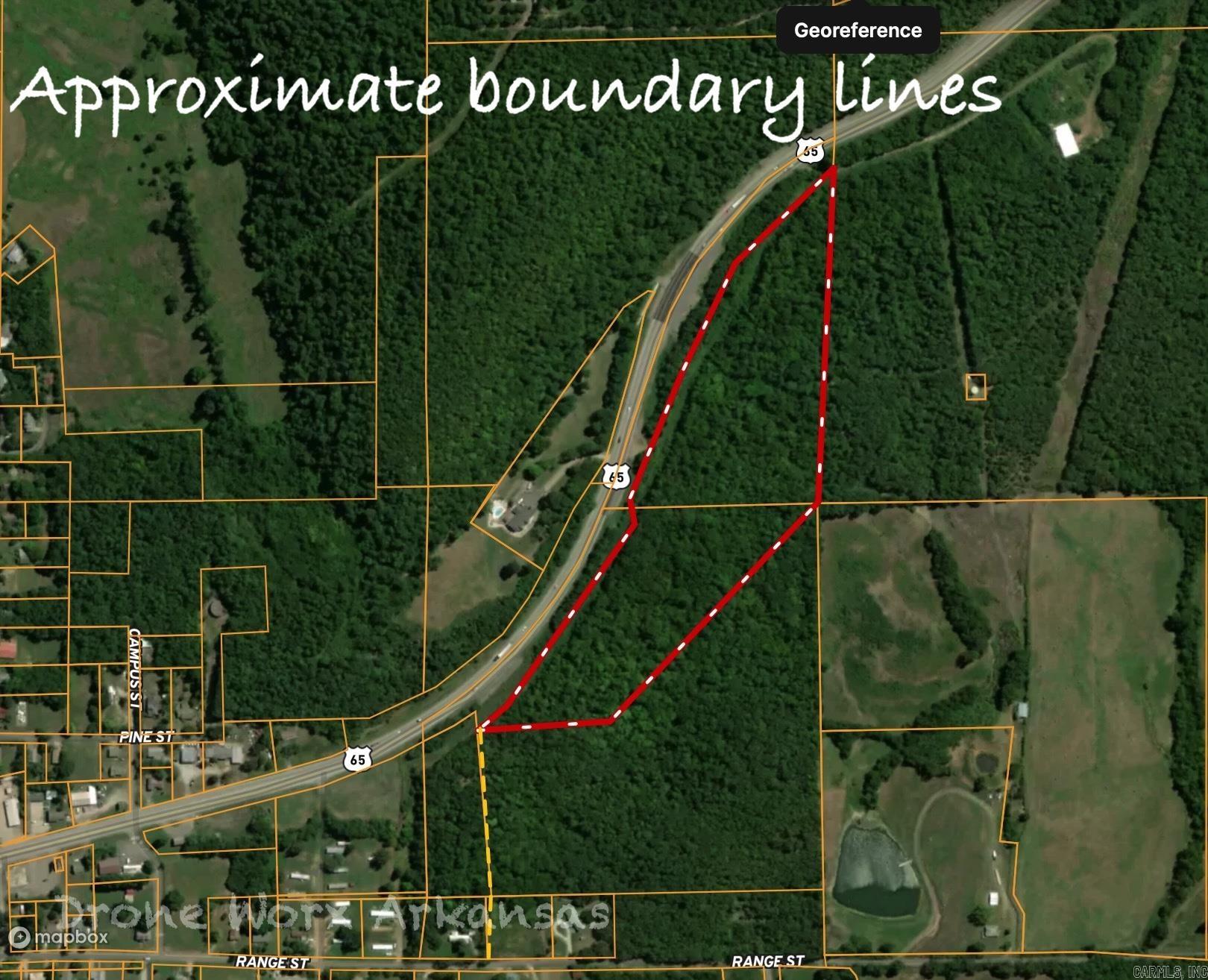 A blank canvas of wooded 18 acres at the end of the road. This land has the view! A deeded easement is already in place and survey completed which will save you money. This parcel has Hwy 65 frontage with power on site and also accesses Range St. Bring in metered water or dig your own well for sustainability. This property is on the city limits border with buildable spots throughout. If you want land, but don't want to be too far away from all the amenities, this is the lot for you.
