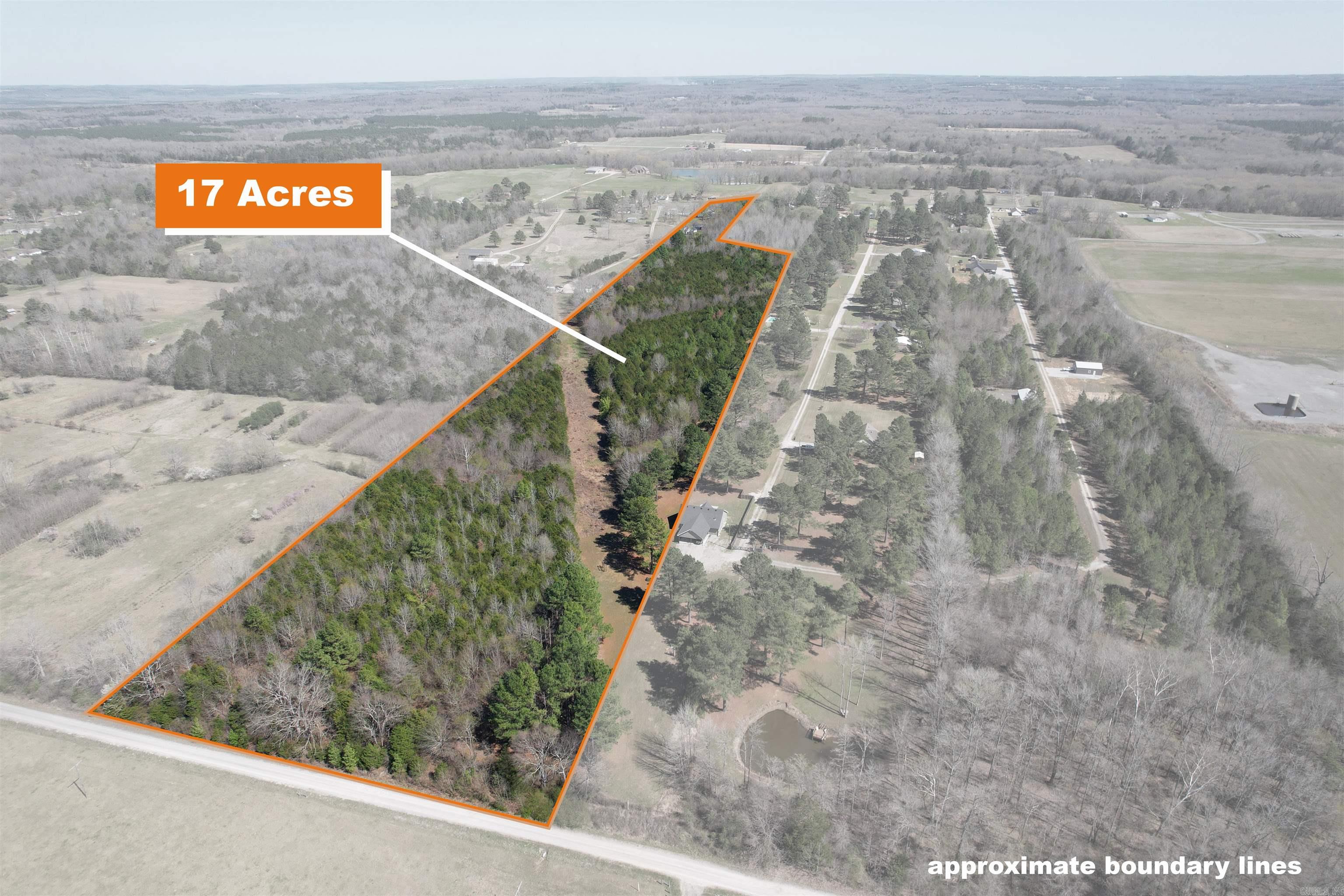 Nice wooded 17 acre +/- rectangle tract of land between Pangburn & Searcy with some road frontage on Hwy 16 just north of 3209 Hwy 16. No restrictions & electric & water are at the road. There is a utility easement running diagonal through the back 1/3 of the tract that would make a good shooting lane. Best of both worlds, having hunting woods in back & clearing for a driveway & house towards the front. Located just North of Mt. Side Dr. & 3209 AR16 on West side of Hwy 16. No mineral rights are available & no seller property disclosure will be available. See agent remarks.